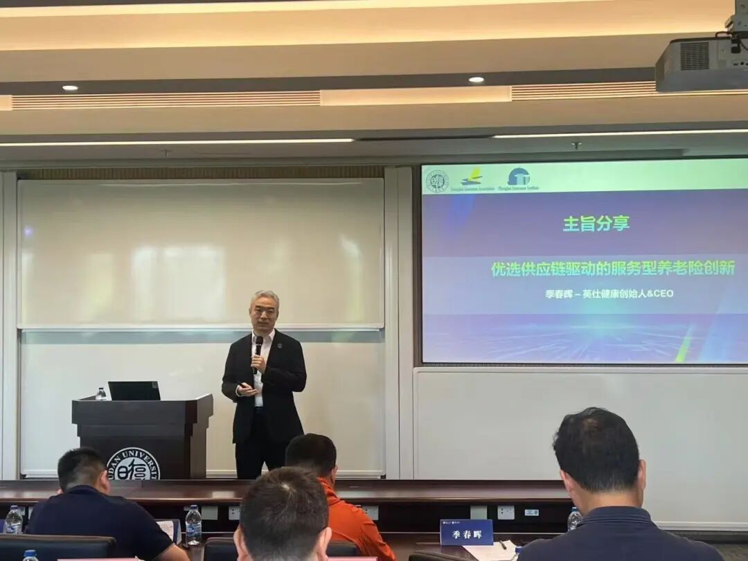 随后,英仕健康创始人兼CEO季春晖先生分享了“优选供应链推动养老险服务创新”,就商业保险在养老产业中的作用,更加重注专业化“医、康、养、护”引领养老险创新平台的全方位服务,重新定义养老保险产品的生态。